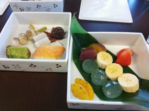 來到京都不能不吃抹茶甜點。推薦大家這一家店的抹茶巧克力沾醬的和風甜點(1458日圓),是祇園門市限定的哦!日式丸子、蛋糕、當季水果等甜食,配上特製的抹茶巧克力沾醬,很特別!抹茶巧克力醬使用宇治抹茶,能品嚐到它特有的苦而帶甜的味道~