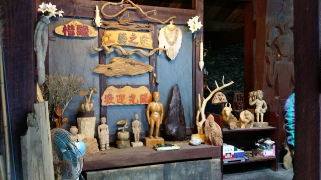以主人在雕刻木刻作品的情景為主,排灣族的雕刻充滿原始、神祕、獨特的藝術風格,不只在各族是獨樹一格,更是世界各博物館中享有盛名。