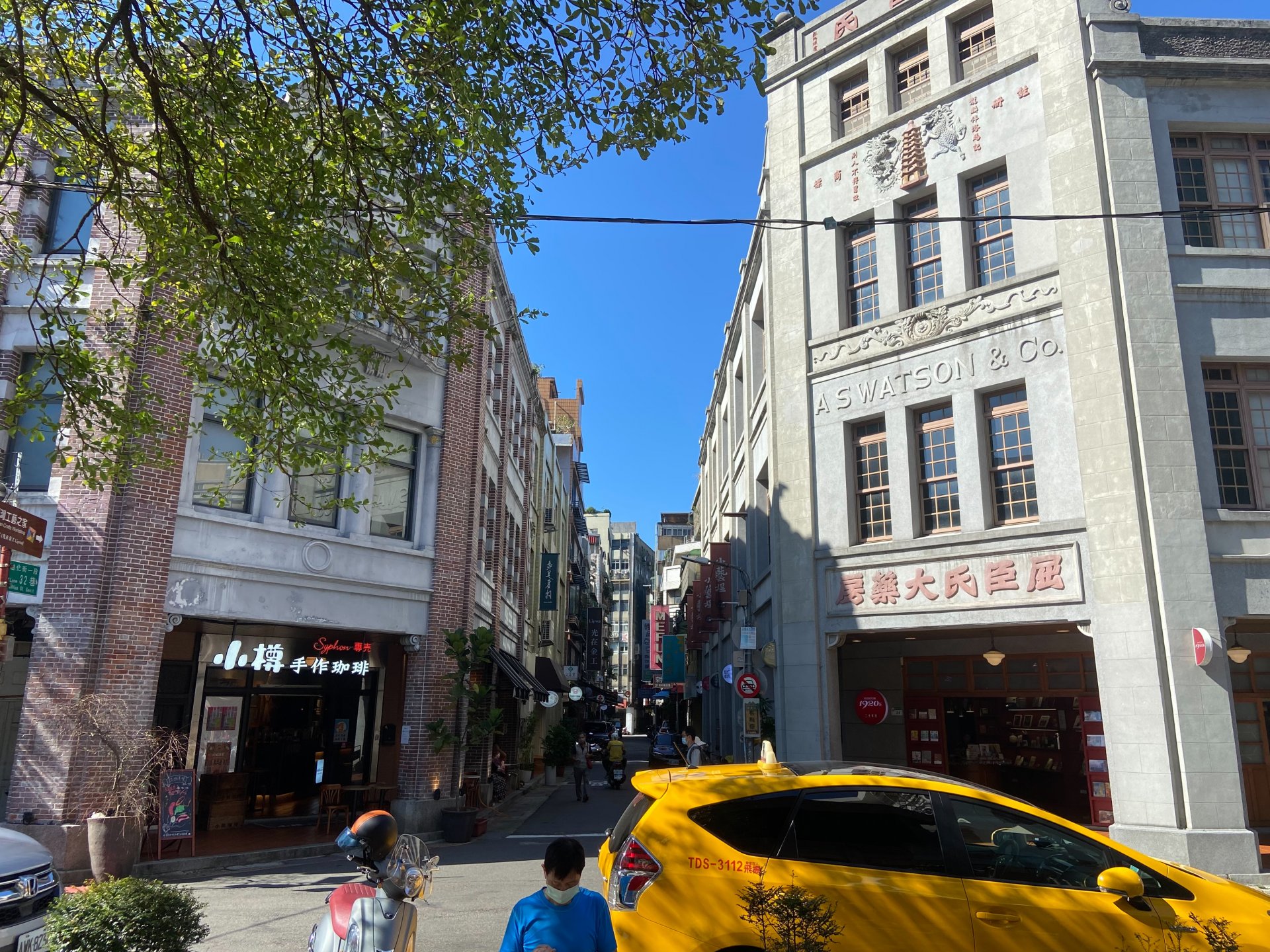 要從早期大稻埕內的商業模式談起,當時主要洋商以收茶製茶為主,直到藥材商李俊啟先生,在日治時代取得在臺代理權,在1917年大稻埕興建屈臣氏大藥房,可惜在1990年代發生火災毀損 ( 內部木造結構燒得精光,僅剩下石材打造的立面外牆 ),於2005年列市定古蹟,後續經過許多年溝通並在李氏子孫努力之下,由屋主的子孫李永崇建築師負責整修營繕工程,終於讓這座擁有近百年歷史的「屈臣氏大藥房」浴火重生,回復往日風貌。