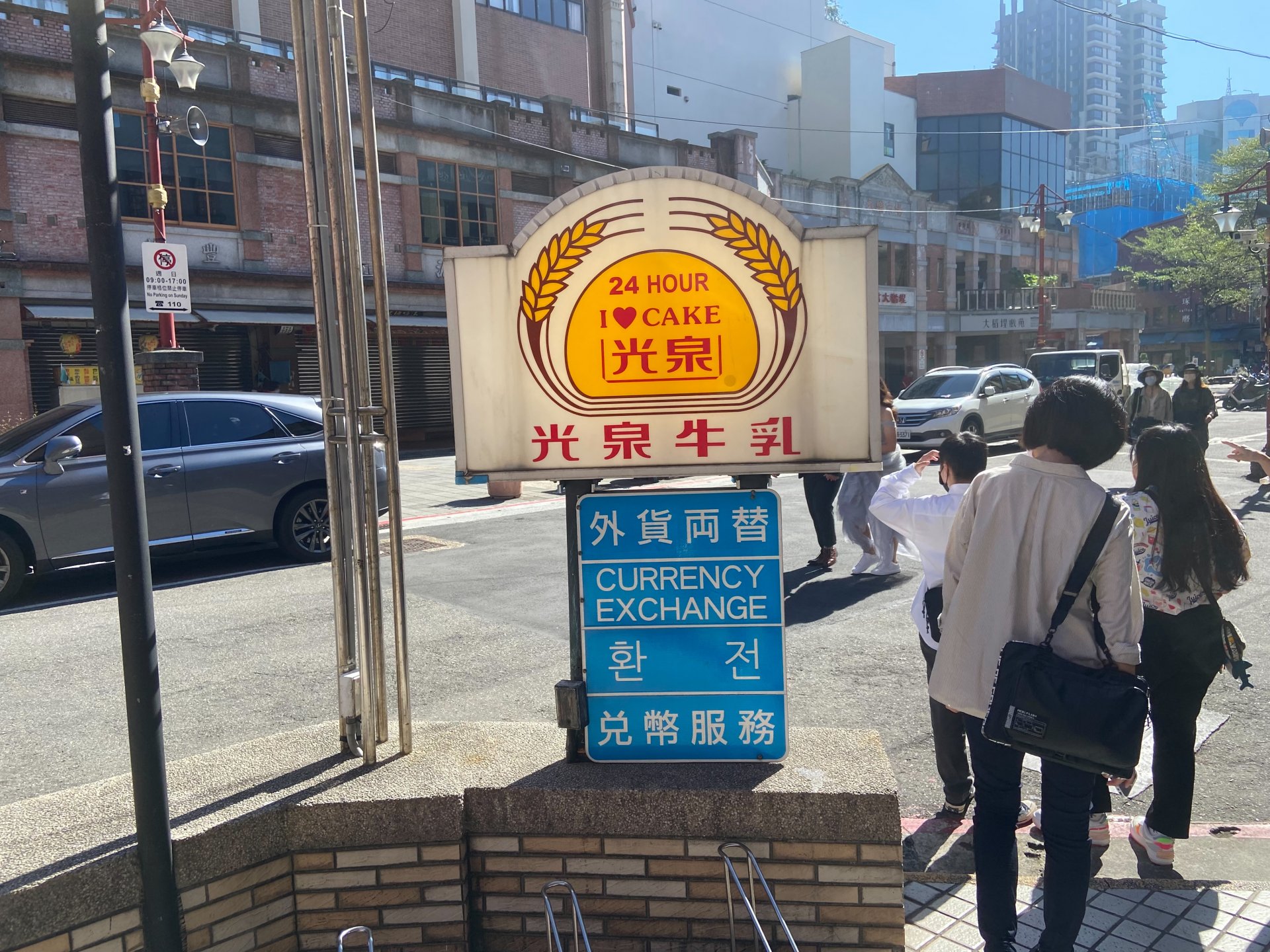 在城隍廟右前方的萊爾富迪化門市外,可以看到光泉牛乳的立牌,其實光泉的發跡處就是在迪化街霞海城隍廟口。1919 年,創始人汪水泉以「泉」字號賣紅豆湯起家,並設立糕餅店,之後其子汪金來、汪來金及汪圳泉於 1956 年自行飼養三頭乳牛,開啟了光泉的新篇章,進入台灣牛乳市場。