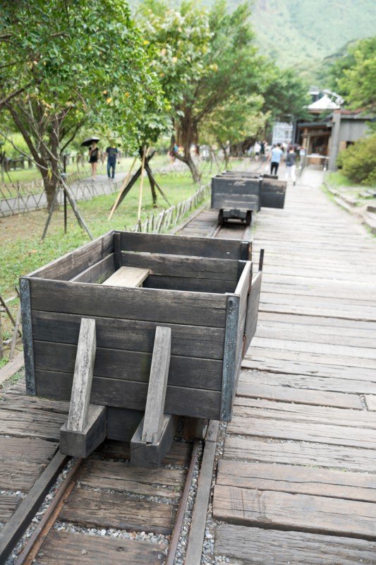 今、足許(あしもと)にありますトロッコ道は、金瓜石鉱山の初期に鉱石と資材を運ぶために使われたもので、鉱山の典型的な輸送手段です。