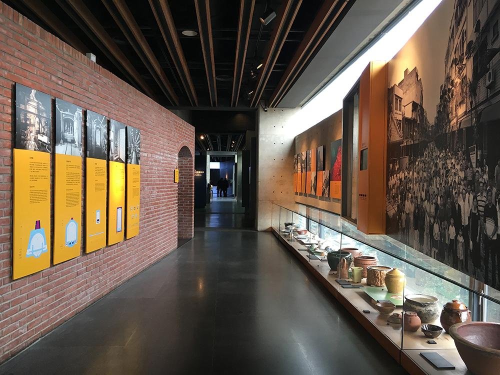 真ん中のボードは日本時代です。日本人が新しい技術を導入したことで、台湾の製陶技術は一層改善されました。その後、1960年から70年代にかけて機械化設備の導入により、更に飛躍的な発展を遂げました。1980年代以降、陶磁器の輸出の増大により、陶磁器は台湾の名産品となり、現在に至って、陶磁器は日常生活や建築物で使われているだけでなく、貴重な芸術品ともなっています。