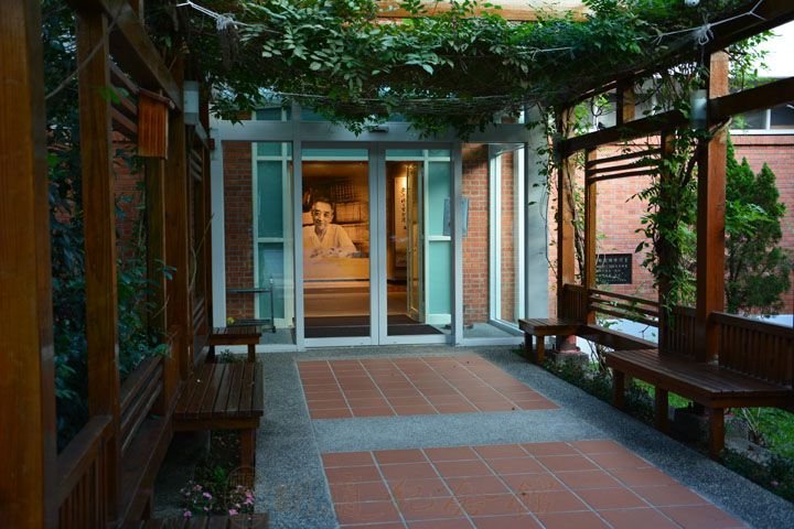 這裡是胡適先生住的房子。在講他的房子之前,我們先看一下他的庭院。這個庭院稍微有點更改過,但是基本上保持著原來的範圍與樣子,像是圍牆、花圃、竹柏等都是當年有的景象,並沒有變化太多。