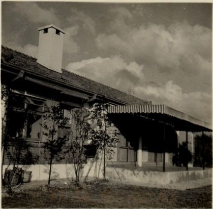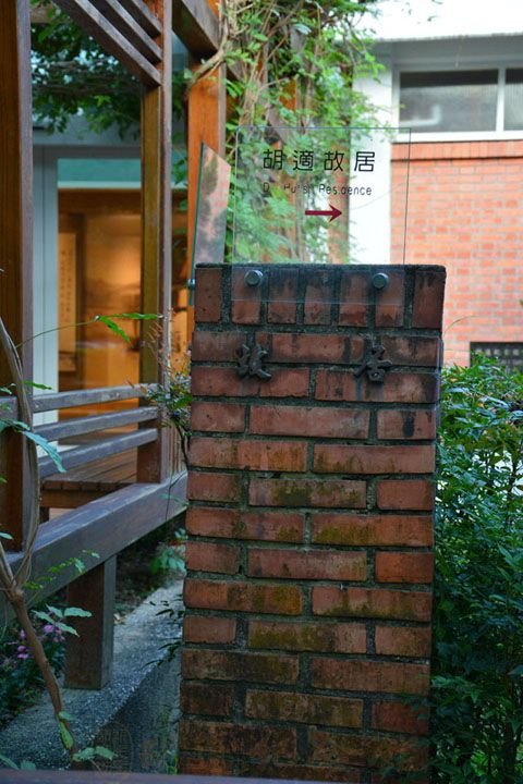 在進入胡適先生的房子之前,我們首先看看這座房子的外觀。這座房子比較特別的是,它是紅磚一層樓的建築,地板有墊高,距離地面幾十公分;三面有通氣孔,具有防潮跟通風的作用,所以待會兒進去看到木地板時,會發現保持得相當不錯,就是這些通氣孔的功勞。