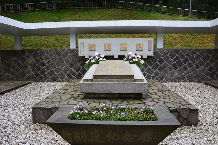 主墓區下方石階的中央,有一塊很大的紀念碑,是重摹的,碑文由毛子水教授所作、王壯為先生寫的字,內容是提到胡適生前對學術文化、民族及人類的貢獻。1972年安置在石階中央,希望來瞻仰的人對胡先生有更深一層的認識。沿著石階往下走,會看到一座胡適先生半身銅像,那是1963年楊英風先生雕塑、中國公學在台校友會捐建的。
