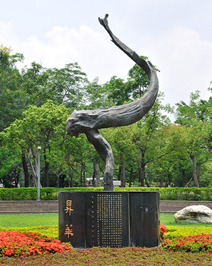 Sublimation is a work by master astrological sculptor Pai Tsang-Yi. The sculpture uses a technique which reshapes dead tree branches with copper or coloured glaze(琉璃) to bring a new life to the beauty of the nature. The original wooden sculpture is collected by the Victoria and Albert Museum in the UK. The work is filled with concepts regarding environmental protection, art, and science, and symbolizes the hardworking and determined nature of Taiwanese people.