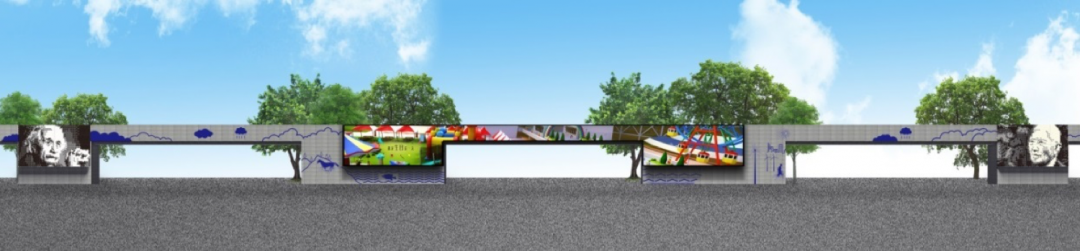 The solar art on the outdoor archway of National Science and Technology Museum pays divide the portraits of four Chinese and foreign scientists such as Marie Curie, Li Guoding, Einstein and Zhang Heng into the smallest unit of pixels by the method of calculus. There are different heights of small iron plates at a large iron plate. The use of on-site sunlight gives rise to a change between light and shade, and the overlap of shades allows scientists to visualize it as a device art that combines art with physical science.