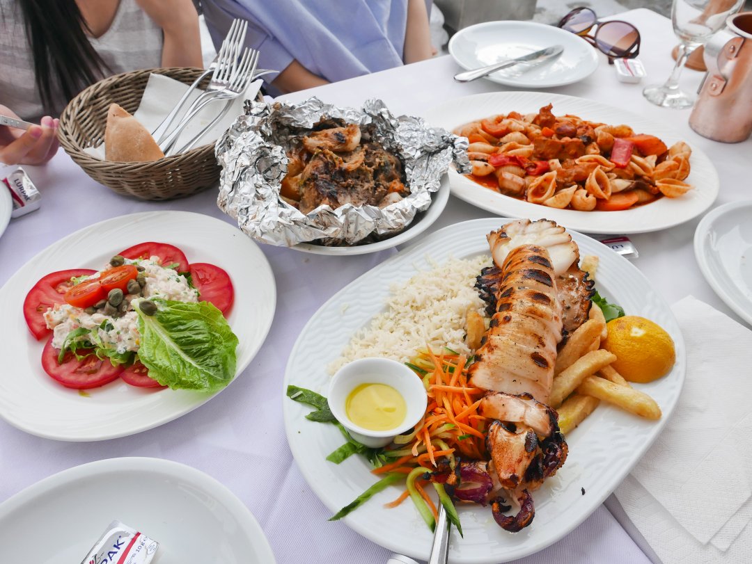 這餐點了龍蝦沙拉,烤墨魚,燉煮羊排和章魚義大利麵。