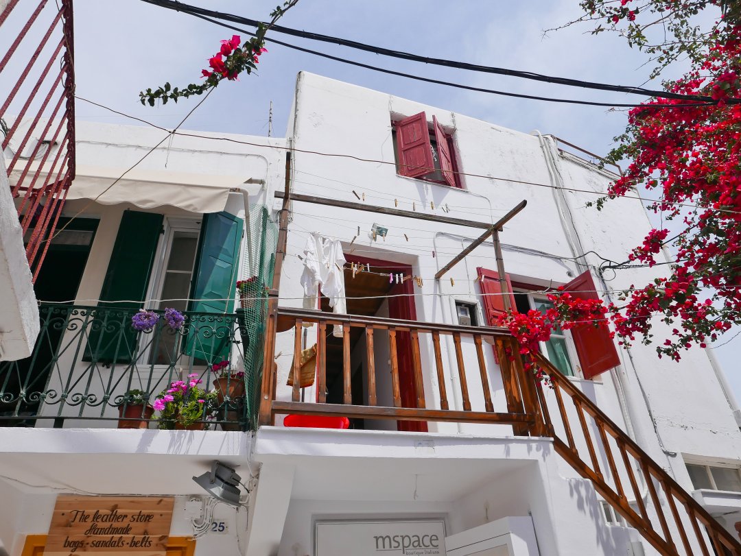 米克諾斯的舊港這頭的房子和市區裡的不太一樣,圓圓白白的像雪糕似的,據說是高級飯店的集中區域。