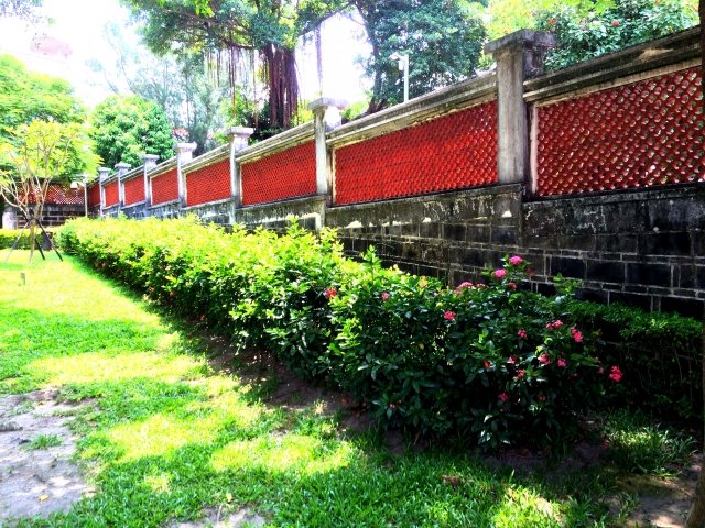 Nhìn vào hiện trạng của tường rào có thể thấy rằng còn sót lại một bộ phận gạch đen chồng xếp thành tường rào đấu tử từ thời xây dựng Nhà trắng thu nhỏ, và trong quá trình trùng tu đã vận dụng thêm những vật liệu khác để sửa chữa.