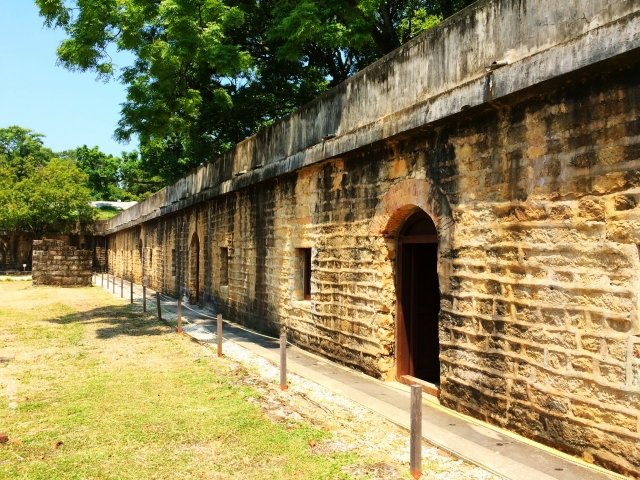 Trước khi bước vào tầng 1 thành chính, có thể thấy được nhà vệ sinh, phòng tắm, nhà bếp và nơi ở của lính tuần, đây đều là những nơi do người Anh xây thêm sau khi đến Hồng Mao Thành. Để thực hành quyền lãnh sự, Anh còn đem hai gian phòng lớn sửa thành bốn phòng giam nhỏ, để tập trung tạm thời những người nước ngoài phạm pháp ở Đài Loan, đợi ngày đưa về nước xử án. Trên cửa địa lao có thể thấy lỗ đưa thức ăn và lỗ quan sát. Đối với quốc gia cực kỳ chú trọng nhân quyền và sự tôn trọng như nước Anh, thì đương nhiên cũng cho quy hoạch một không gian hoạt động ngoài trời, đây chính là sân thư giãn, là nơi để phạm nhân phơi nắng và thư giãn gân cốt.