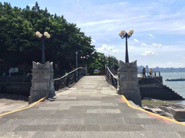 Vừa bước vào bến cảng Hải quan Đạm Thủy, lọt vào tầm mắt là khung cảnh rộng lớn tuyệt mỹ của núi Quan Âm và cảnh sông Đạm Thủy, và một trong những cách tốt nhất để nhìn ngắm cảnh quan bến cảng Hải quan là ngồi dưới bóng mát của cây si bên bờ đê, tận hưởng những phút giây nhàn hạ trong tĩnh lặng.