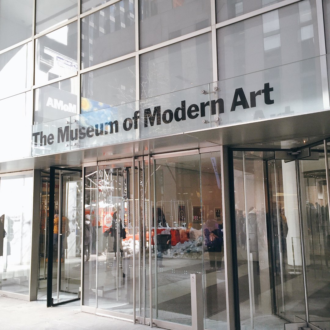 現代藝術博物館位於紐約最熱鬧的區域之一,曼哈頓中城區第53街,有著美國最大的現代藝術收藏,舉世聞名的梵谷《星空》以及畢卡索《亞維儂的少女》及收藏於此。博物館周圍高樓大廈林立,藏匿於人來人往的繁忙街道中與普通的玻璃帷幕後,若是沒有仔細看玻璃門口上的黑字標題,還真容易錯過這塊寶地!