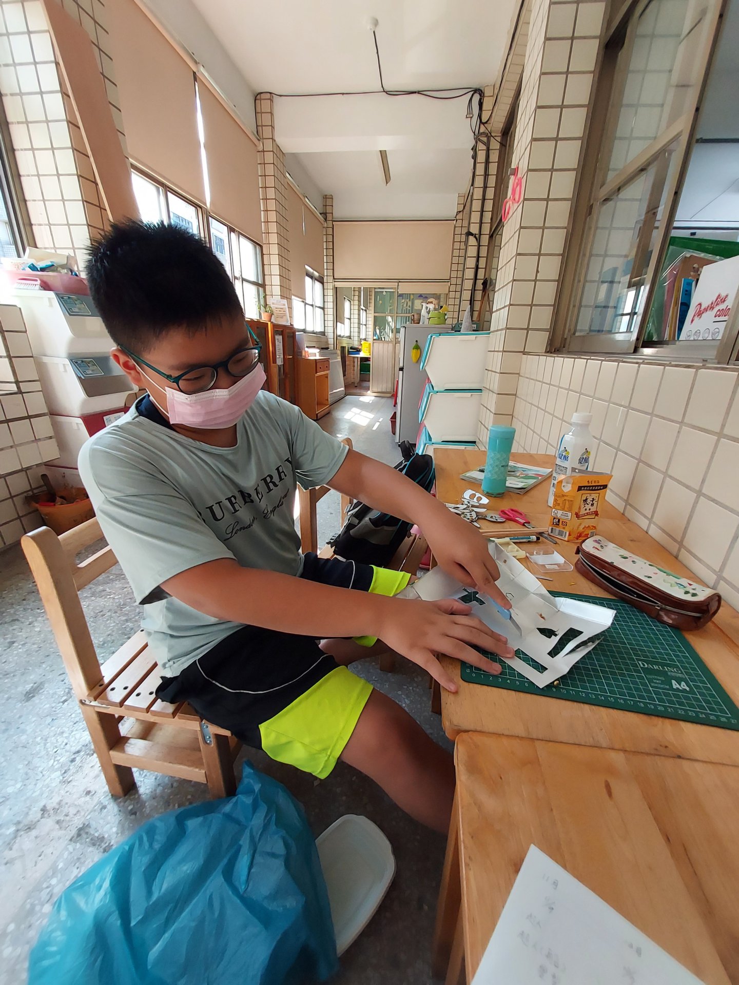 創作媒材是先畫在廢紙上,確認沒有錯誤後再用厚的紙黏在後面,