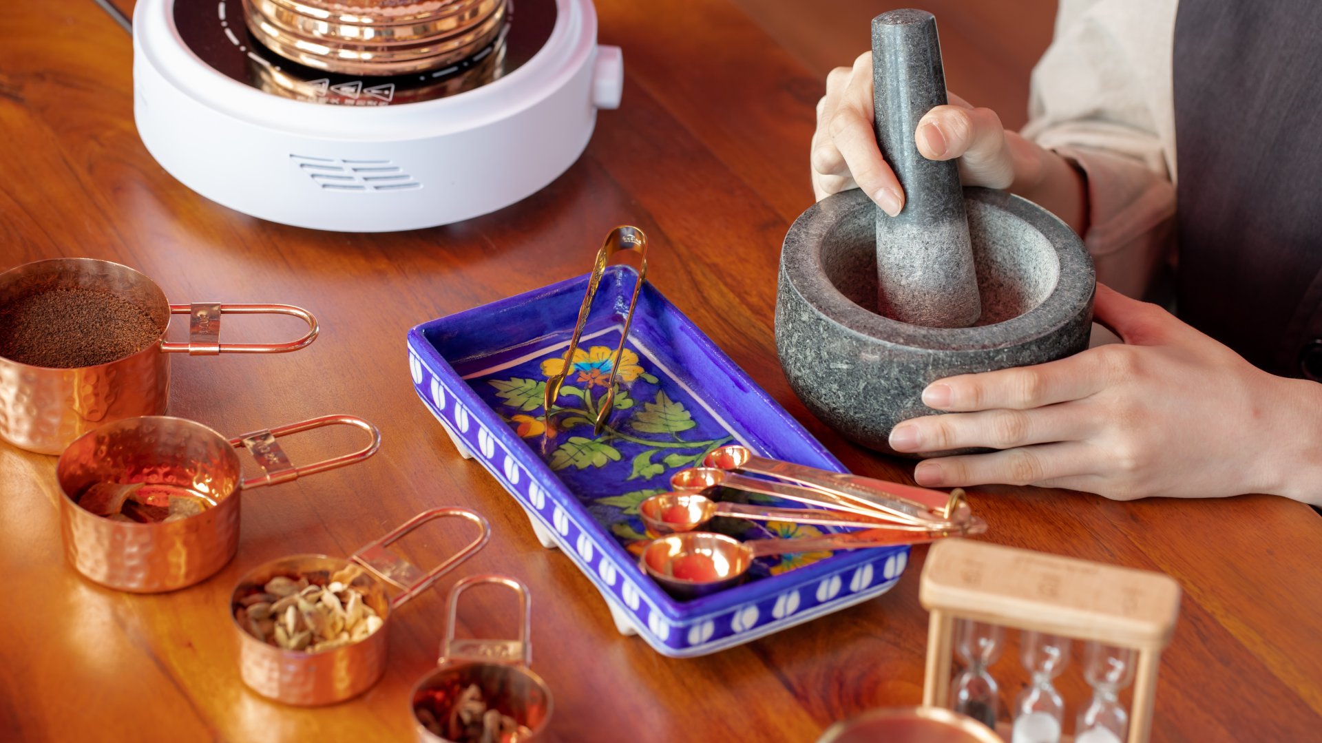 以泰姬瑪哈風格設計而成,提供賓客享用 Masala印度香料奶茶,您可以坐在鮮豔多彩的印度風茶室中,觀賞茶司如何集結10種原料風味,鍋煮出氣味豐富溫暖的香料奶茶。