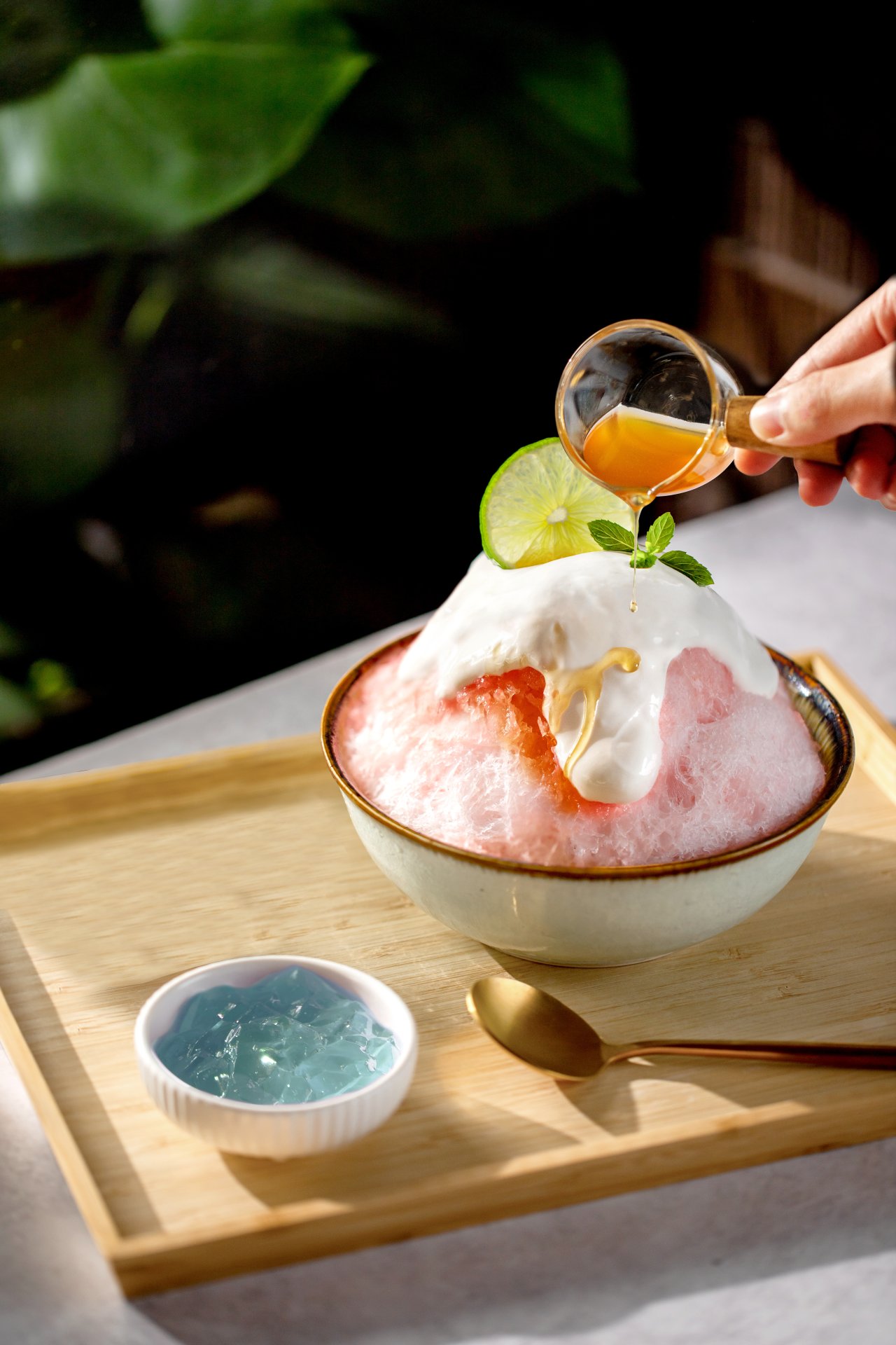特別推薦每日限量的網美甜點「冰酥」:這是一款以水果、奶茶等原汁現場製作的細膩冰霜,加入旁邊小碟的配料增添口感,再澆上奶霜,宛如一碗酥酥綿綿的小山丘,冰酥底部還埋藏著小驚喜唷!