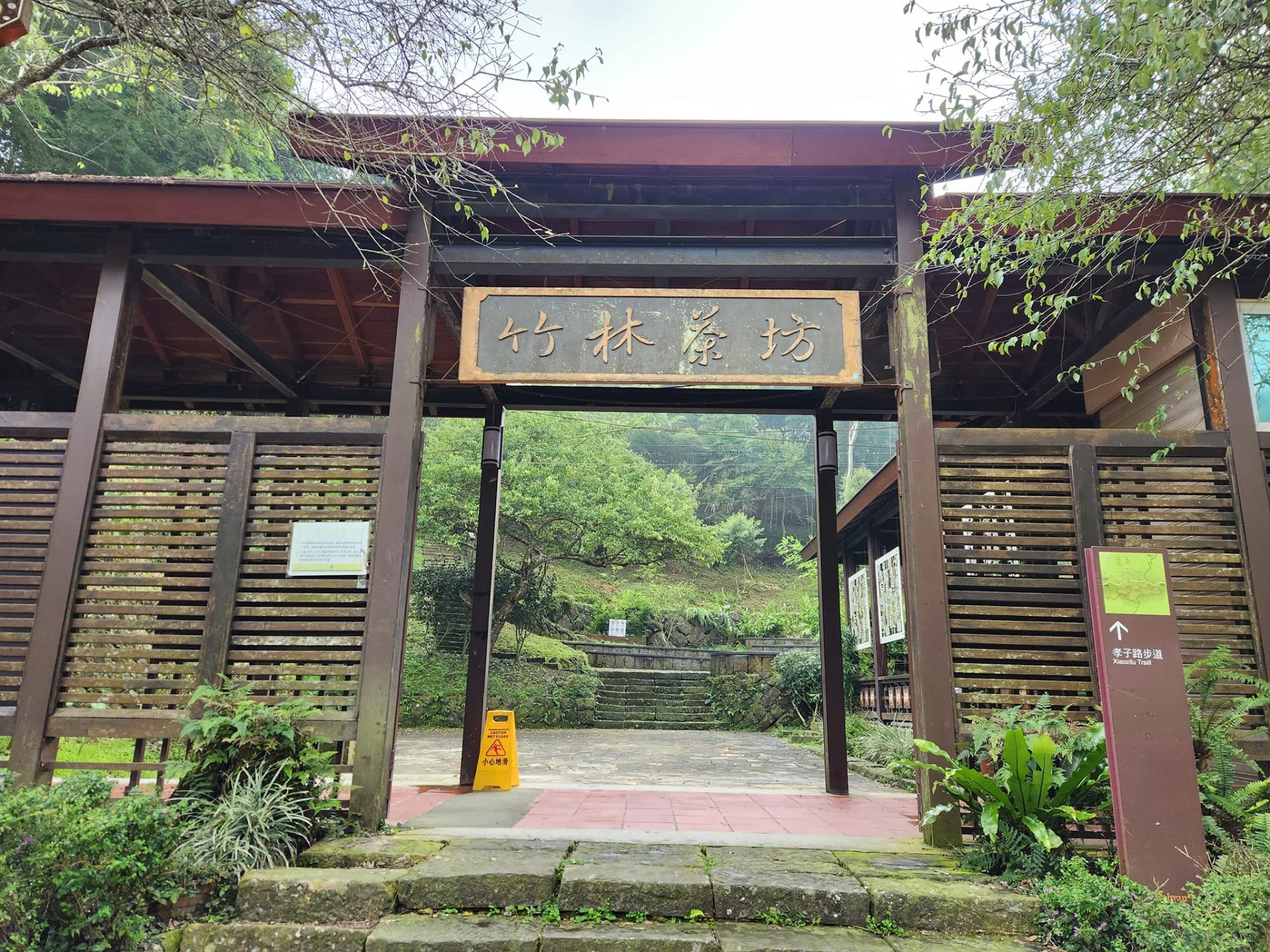 位於孝子路步道的最高點,一旁的竹林小徑為大巃頂步道的起點,可續行至奉天岩、獨立山步道。而下方即通往竹林茶坊方向。