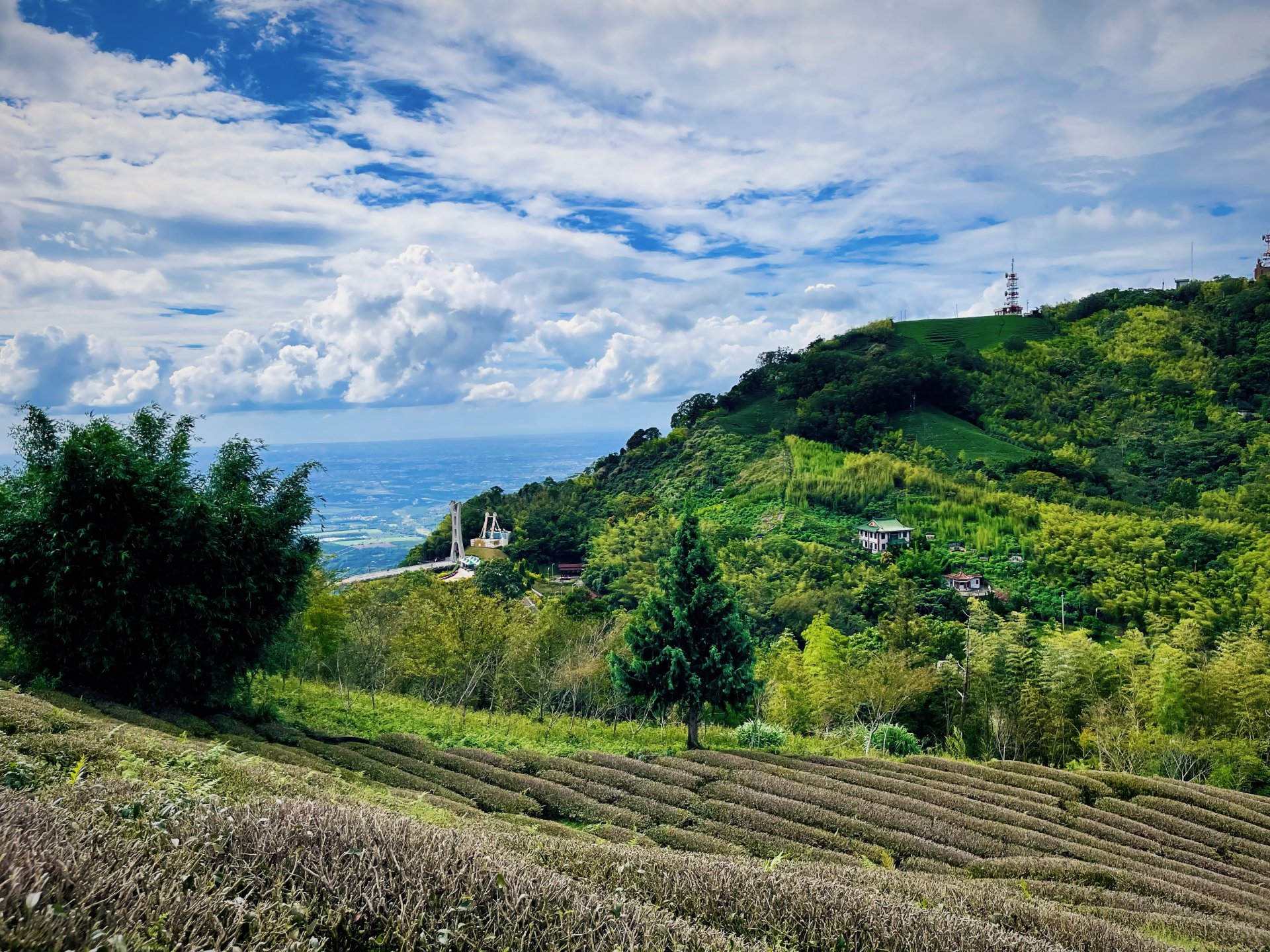 而抵達第二涼亭後,旅人將能夠遠眺雲嘉平原,往左前視角能夠將壯闊雲梯美景映入眼簾,往右後視角能一覽太平村落風光,收穫茶海與森林景緻。