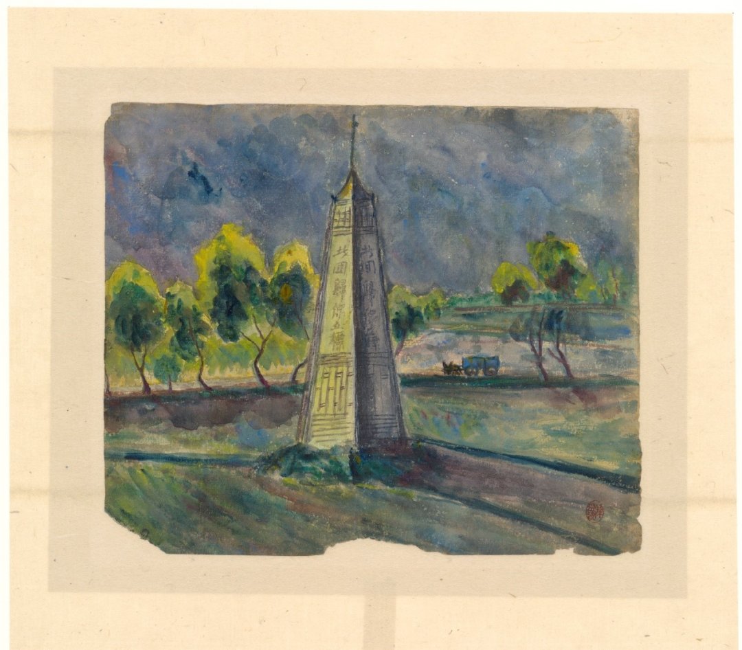 1920年,原先在嘉義公學校任職的陳澄波轉調郊區的水崛頭公學校,北回歸線標誌便位在嘉義市與該校之間。換句話說,巨大的紀念標塔,是陳澄波往返兩地時必然會見到的景物。這幅畫的創作時間點,或許也就是在同一個時期。
