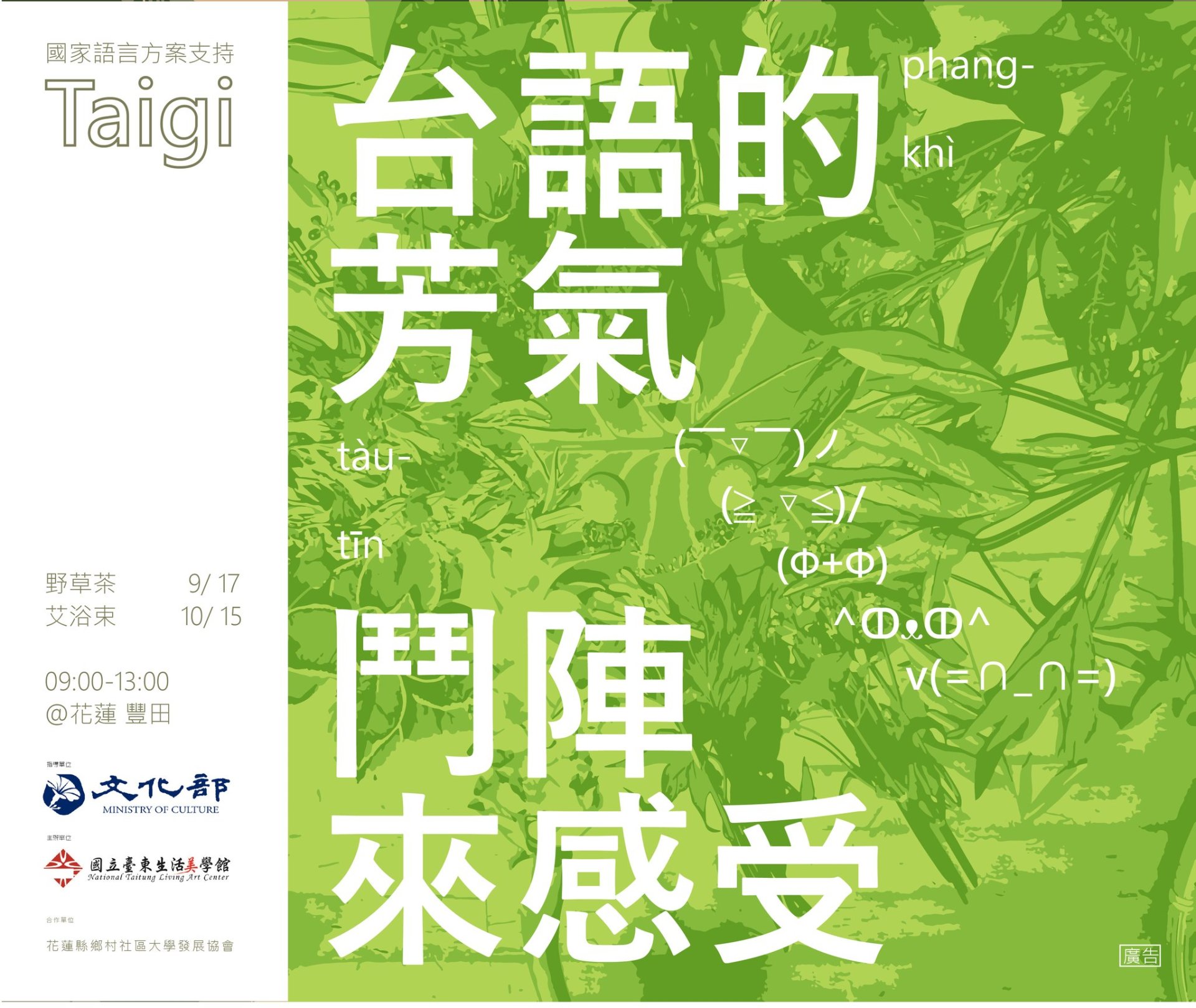 十月份主題為『台語的芳氣,鬥陣來感受-艾浴束』,講師林瑞怡帶領學員採集香氣植物,感受不同植物的觸感及不同溼度時的香氣。過程中並透過字卡學習挽bán、遏at、鉸ka、剪tsián等各種台語動詞與香氣形容詞彙。不只體驗了香草植物的整理挑撿、嗅聞、清洗、日曬、捆紮與熬煮過程,感受到艾草hiānn-tsháu、月桃ge̍h-thô、野薑ia̍h-á-hue、檸檬香茅le-bóng hiang-hm̂、大風草tuā-hong-tsháu等香草植物在熬煮過程中散發出不同的香氣外,更令人放鬆的是可以直接進行香草植物的「手浴」體驗。一開始是單方植物的手浴,接著再依各自的喜好將不同植物混合進行複方手浴,在學習台語過程中其觸覺與嗅覺都被照顧到了。在秋風起氣候轉爽的季節,溫暖且香氣迷人的手浴體驗讓人馬上進入放鬆滿足的狀態,學員們都非常期待回家可以進行足浴或泡澡。再帶領大家畫下香氣色彩風味輪,將香氣視覺化,活動最後,大家用縛pa̍k、絪in、纏 tînn、摧tshui完成一 把 pé 艾浴束,過程中用台語討論對香氣植物的用法、及體驗植物的印象,有人分享小孩皮膚癢用野薑葉子洗澡,有坐月子期間用大風草洗浴,有小孩對芳香萬壽菊味愛不似手一直聞一直聞,更加深了感官與語言的記憶連結,這也是本次活動的目標。 該活動全程以台語進行,並感官體驗刺激大家對於母語的運用表達與記憶。當孩子們聚在一起,一個孩子起了頭唱起了《台語鹿出任務》裡面的〈guâ早gâu-tsá〉,其他孩子也開始歌唱,現在的新的台語歌謠開始在空間裡流轉,連不會唱的大人們也跟著哼唱,唱完又接著另一首台語歌「歡喜肉圓來跳舞」。台語正以新的面貌在孩子間發芽,講師林瑞怡表示,她本身就是母語家庭的媽媽,想給孩子有一個於日常生活中運用母語的環境,因此才會從周遭的香氣植物著手規劃本次的台語活動。讓母語可以如香氣般,在日常生活中無所不在,就是她心中最深的期盼,眼前的孩子們的唱聲,正是她的想望。