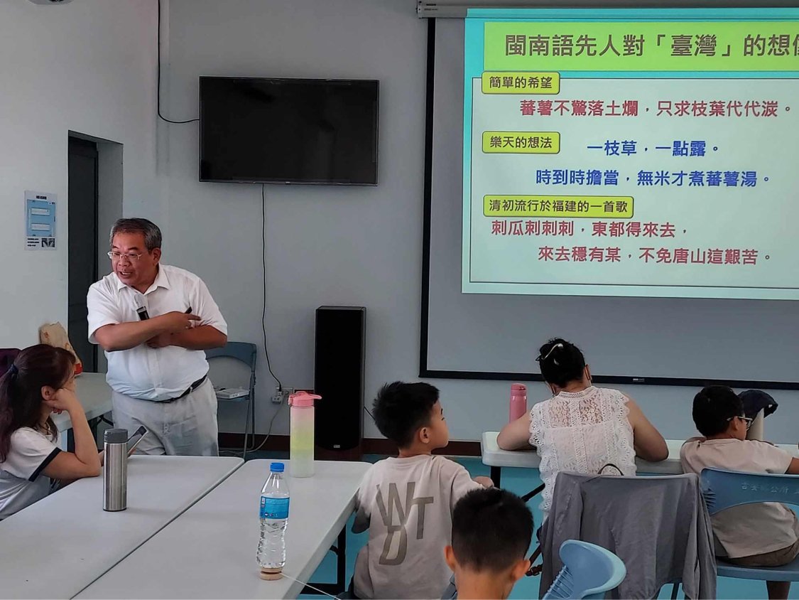 一、臺語諺語課程,主要由國立臺灣藝術大學的黃文正老師講授,內容以民俗文化、生活哲思、趣味性諺語三方面為主,幫助學員走入臺語豐富的文化和歷史環境。