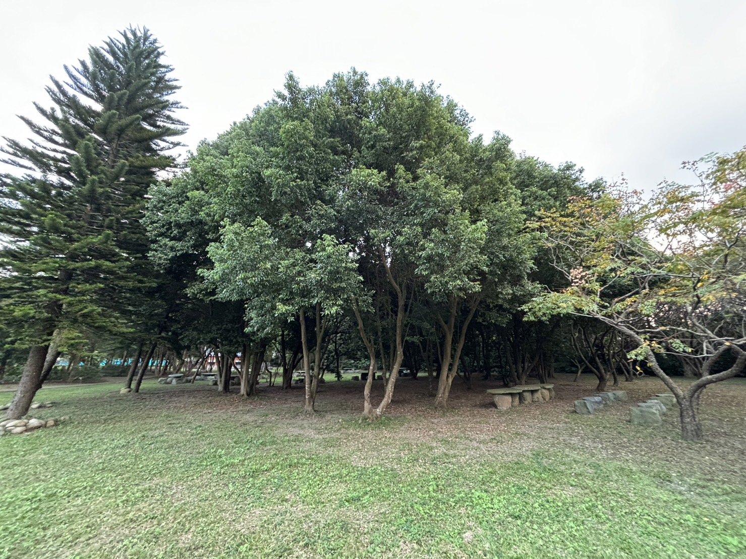 建議您四處看看樹牌上的樹種,像是:台灣欒樹、苦楝、青楓、山櫻花、烏心石、櫸木、朴樹、樟樹、水柳等,都是台灣原生的樹種;當然園區裡還有許多引進的樹種,像是東北方最高的那三棵,身上樹皮脫落光光的檸檬桉就是一例。
