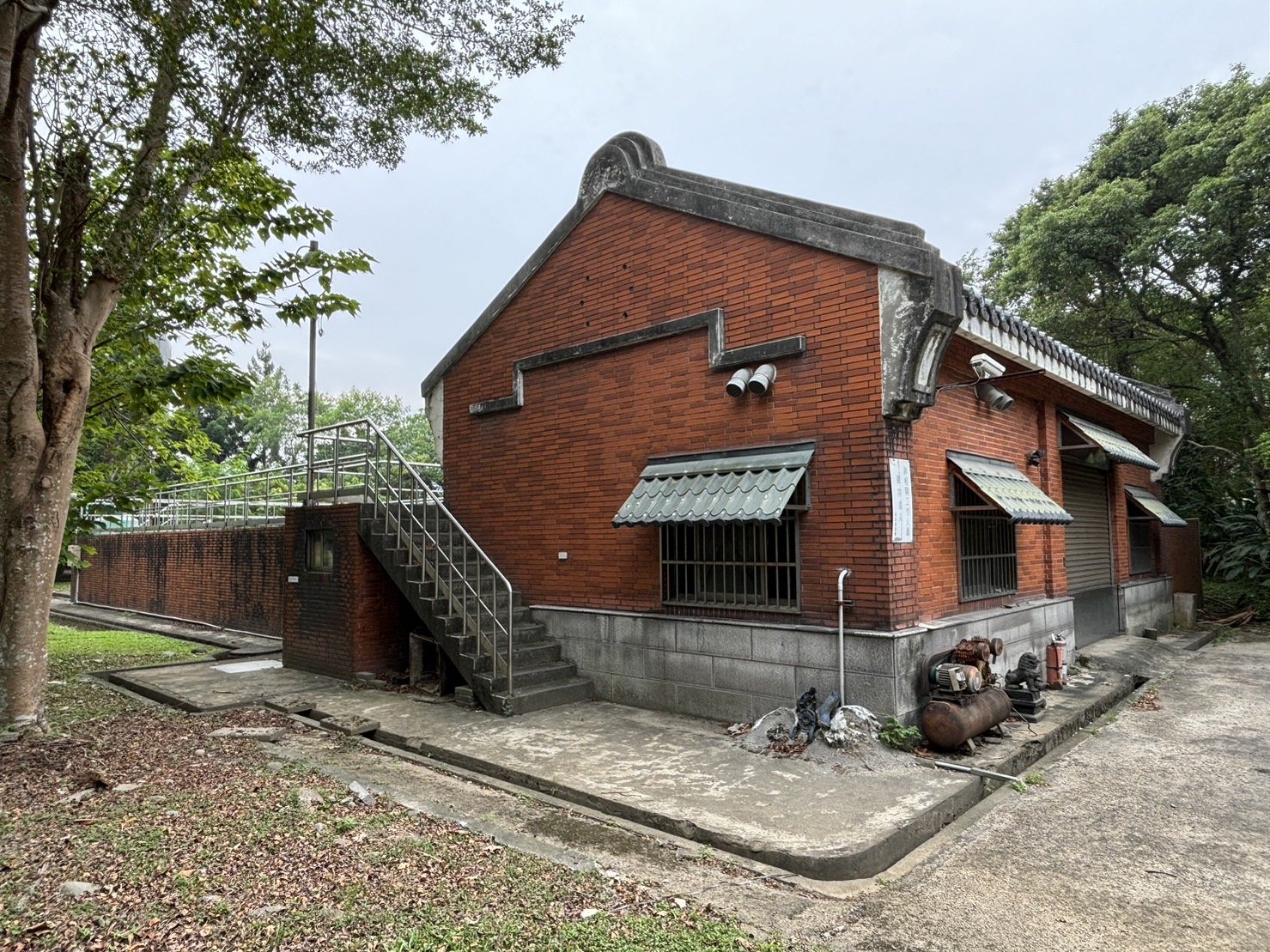 污水處理廠是國家教育研究院最初設置時就有的設施,如果你仔細觀察或拿出手機海拔App來院區四處測量,就可以發現這裡是院區內海拔相對較低的地方,相反的在院區海拔較高的地方,也就是良師園的北側設有自來水塔,利用重力方式輸送供應全區用水。我們常說的「上水道」就是自來水管路,而「下水道」就是污水管路,和水往低處流有關。