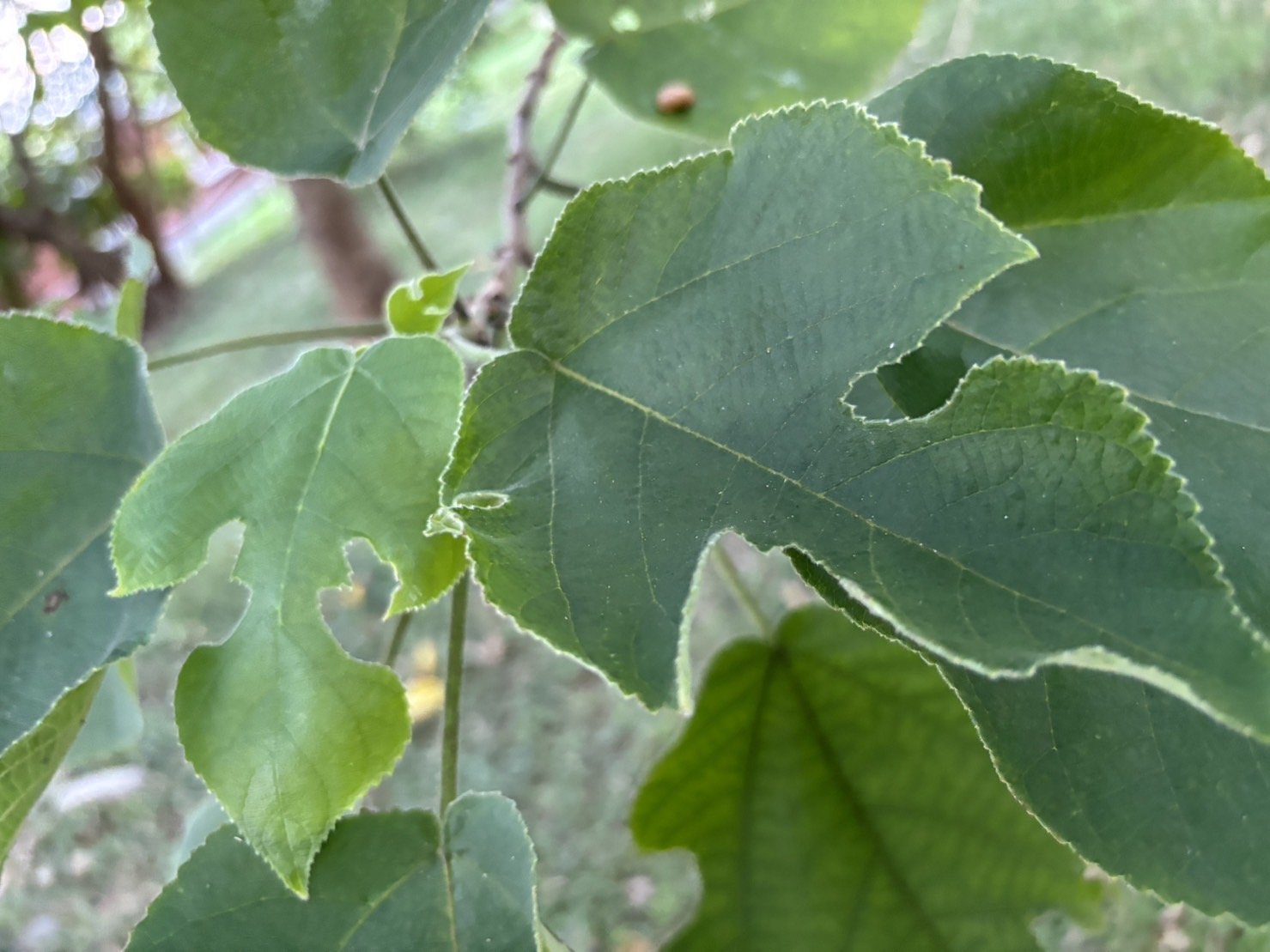 在森林劇場北側有一片不是人種的樹林,這片樹林是大自然、土地公負責照顧的,我們稱為「次生林」,也就是在破壞、荒廢的土地上,自然演替出的天然樹林。其中最常見的構樹,它廣泛分布在台灣低海拔的荒地,是道地的本土原生種。