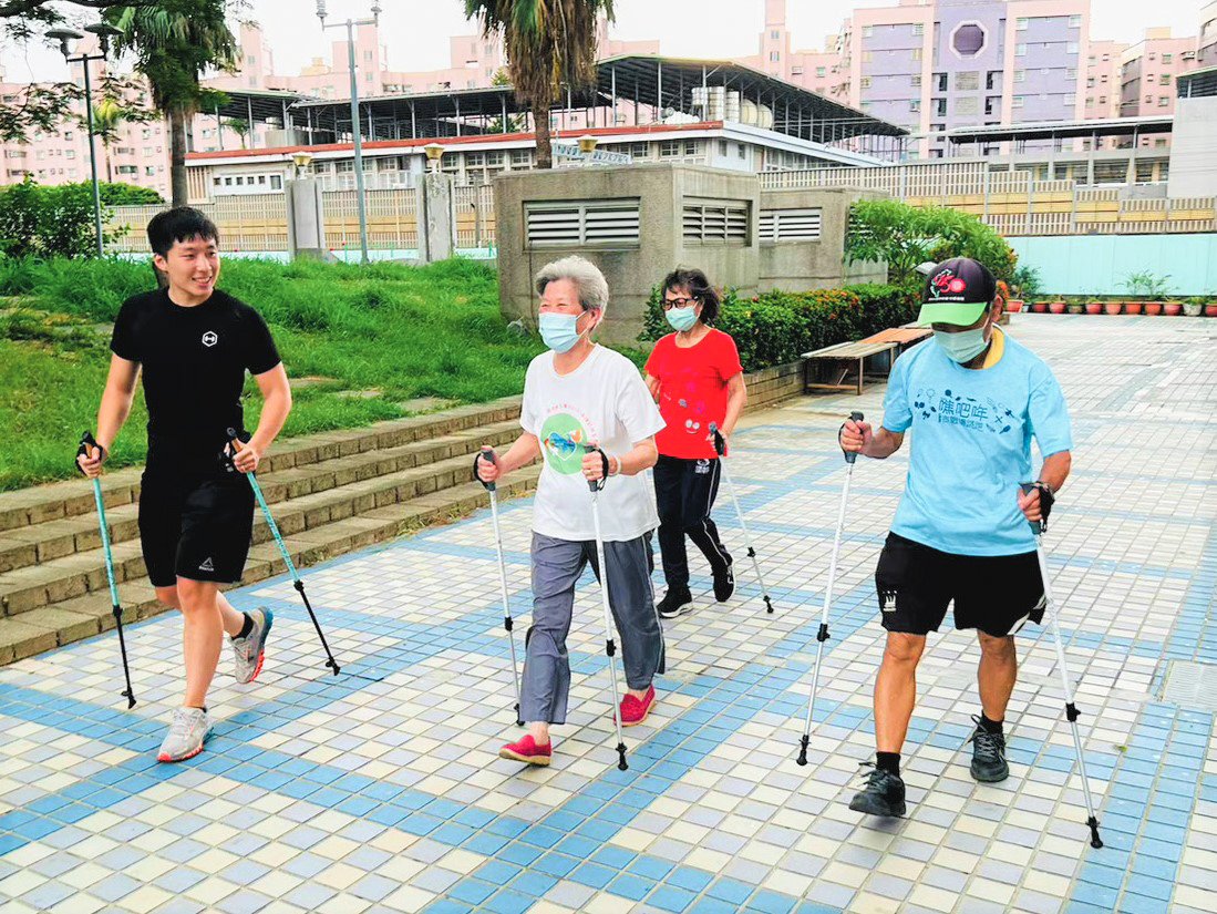 約20年前,在成大林麗娟老師的規劃下,台南市第一個健走步道就設置在長榮新城的中庭,寬廣無車的環狀路線,成為社區長輩們日常運動與社交的重要空間。成大也持續與社區保持合作,陸續引進各種運動,112年更引入新型的北歐式健走,讓長輩們走得更安心。