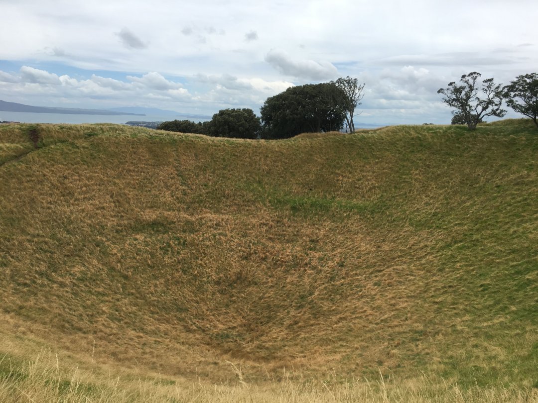 照片一所呈現的是一個深達60公尺的鍋狀底山口,形成原因是由於伊甸山為一座死火山的火山口,因爲火山噴發的岩漿覆蓋近6個平方公里範圍,因而造就這樣景觀特殊的樣貌。且因長滿了草,看起來就像一個毛茸茸的大鍋子呢!