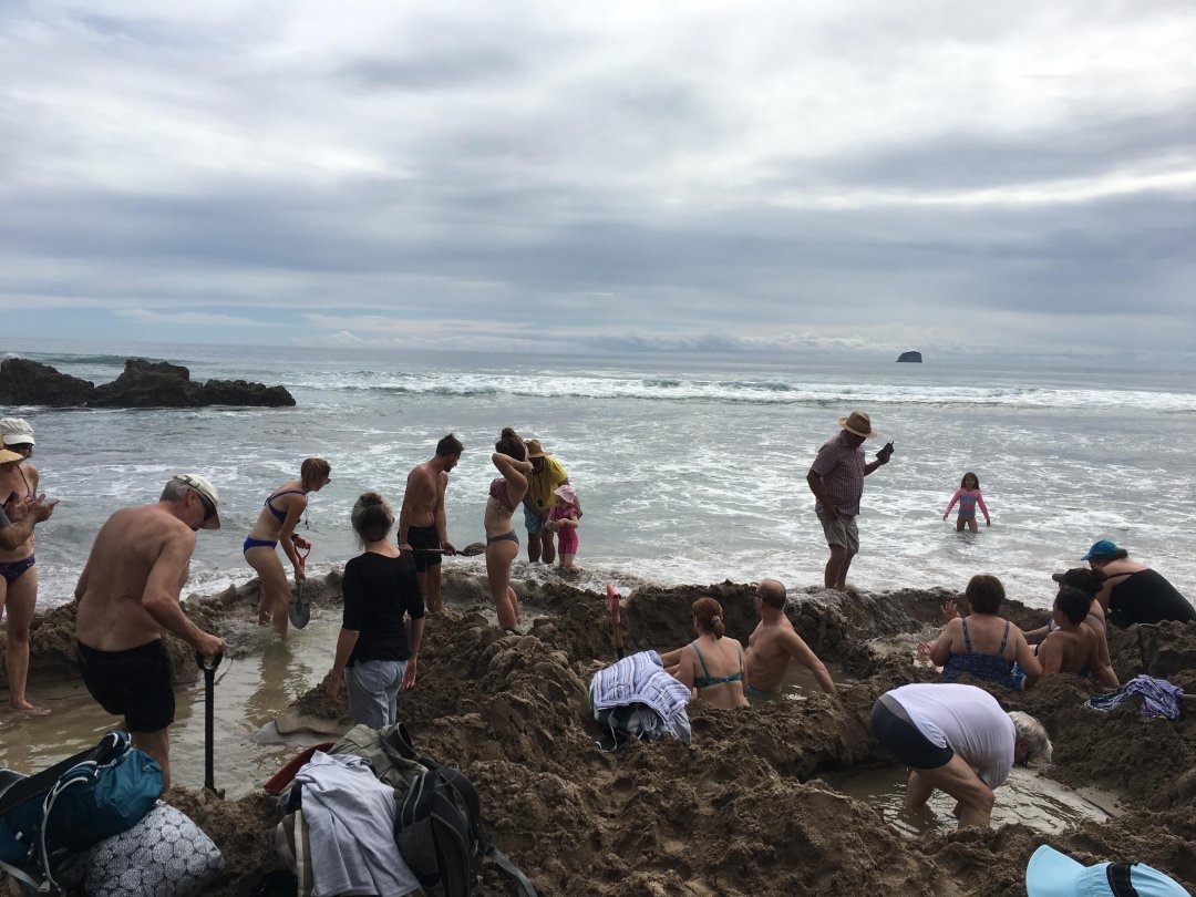 熱水沙灘顧名思義就是沙灘上的會自己湧出天然熱泉。如照片一所示,沙灘上有一個一個的洞,但這些洞可不是天然生成的,而是大家自備鏟子在沙灘上挖出的溫泉坑。