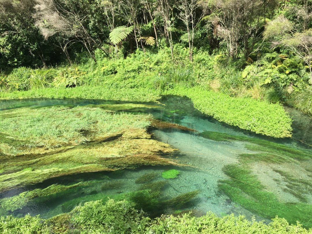 雖名為藍泉,但我看倒是比較偏綠色。告示牌上寫著有70%的紐西蘭瓶裝水都是來自這個地方,可想而知水質是多麽地清澈沒有雜質。但可別以為在這邊可以喝水喝到飽喔,因為告示牌上同時也叮囑遊客要按照規劃的木質棧道走,以免破壞了這邊的自然生態,可見紐西蘭政府是多麽地重視環境的永續保護。