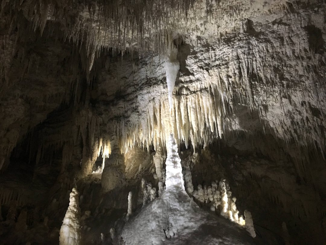 這個景點同樣也是只能現場看無法拍出美麗照片的。因為在這個洞穴裡,除了三張照片所示的鐘乳石以外,還因裡頭的螢光蟲而被譽為「世界九大奇蹟」。這種螢光蟲不是台灣夏夜的螢火蟲,而是一種紐澳獨有的真菌類蚊蚋的幼蟲,外型看起來像一般的蚊子但卻不會飛,只能附著在濕潤的岩壁上,尾巴末端會發出淡藍色光芒,並利用昆蟲的趨光性吸引獵物上鉤。