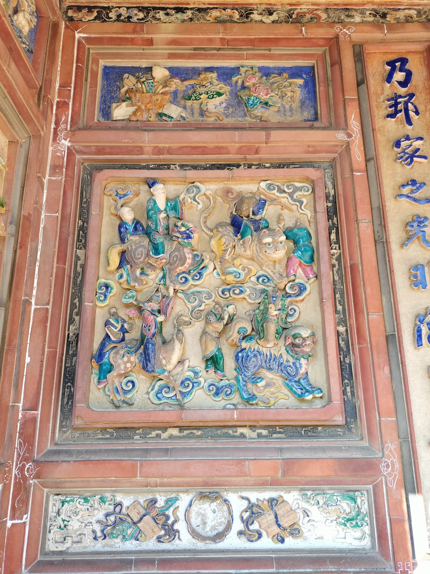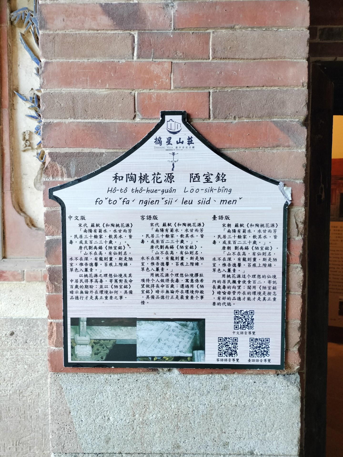 摘星山莊所展示的依溫、彩釉陶器彷彿是工匠的巧思和藝術靈感的結晶。這些陶器以其釉色溫潤和陶福姜態的優雅姿態,應用在建茶物身堵、群塔、水車堵、墀頭等裝飾品上,散發著濃郁的文化氛圍。特別是門羸側邊加冠錦上花的創新,不僅為陶器增添獨特風采,更將這些裝飾品融入了建築的美感中。這些陶器的製作過程極其複雜,不是一次性燒製而成,而是由一小段一小塊精心黏合而成,呈現了工匠的細緻手藝。這樣的陶器除了在藝術價值上備受推崇,更在保存價值和文化價值上居高不下,彰顯了摘星山莊陶藝的精華。