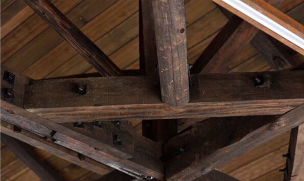 臺中放送局的屋頂木桁架系統採用檜木和福杉,主構件選用檜木,楹木則使用福杉。屋架型式包括中柱式屋架和偶柱式屋架,輔以三角形框架,形成二坡水和四坡水屋頂的變化模樣。