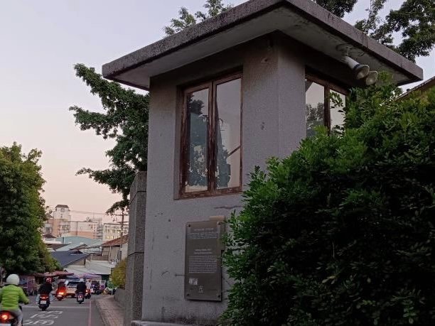 臺中放送局大門左邊的小建築,原為日治時期憲兵單位所遺留的衛哨亭,面積僅1.96平方公尺。作為廣播宣導政令的站點,衛哨亭在當時負責監視四周,並備有機槍以因應安全需求。該衛哨亭基座設有機槍口,下方有機槍堡,並有地道通往下方。經過80年,地道已封閉且無法使用。這座衛哨亭見證了時代變遷,是歷史的實質見證,敘述著當地在日治時期的軍事歷史。
