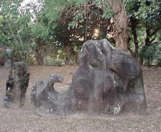 臺中放送局庭院的大石頭引起了兩種解釋。據中廣退休員工指出,這些石頭實際上是中廣當年購入,用以美化花園,其中一塊形狀似草地上吃草的牛,另一塊是從屏東楓港購得,為了穩固位置特地埋了約50公分深。然而,《臺中放送局修復報告》卻提到,根據當地日本居民的說法,月池、日池及其周圍的景觀石,以及柳丁樹後方的大石頭,皆屬辟邪之物。在日治初期,臺中放送局前方是日本憲兵大隊,曾在此執行槍決,因此特別在興建時配置月池、日池,並設置避邪石座以辟邪避兇。這兩種解釋為臺中放送局的庭院增添了神秘與歷史的層次。
