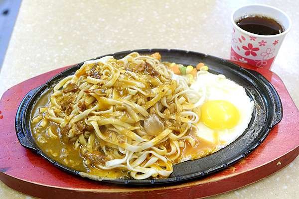 鐵板麵的麵條選用寬陽春麵,搭配蘑菇醬甜度偏高,口味還不錯。一份份量十足,一個人吃完絕對有滿足感,尤其是學生吃粗飽的首選呢!