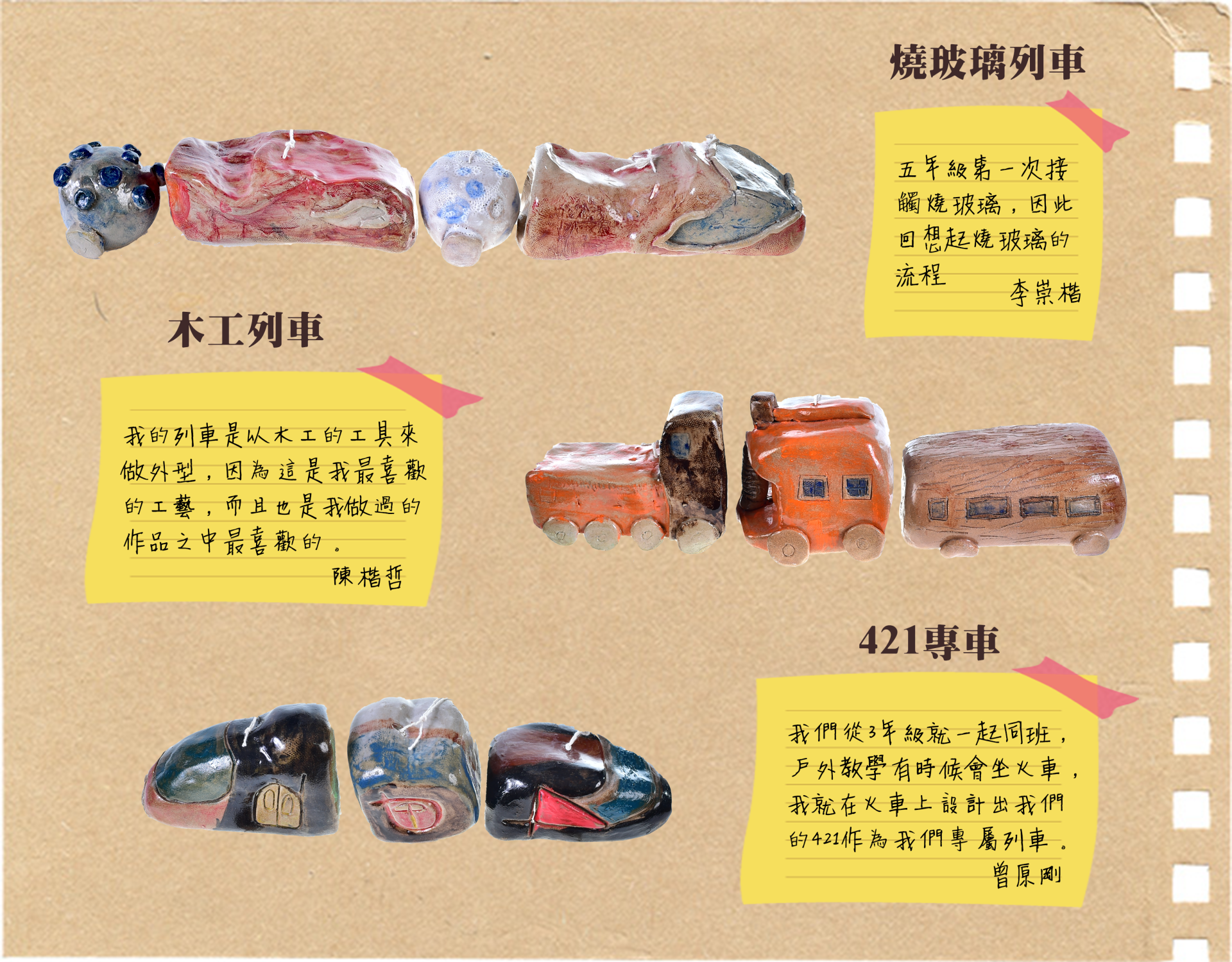心裏箱裝的都是我們這四年來的回憶及所學到的能力,包含了數位藝術、立體、陶藝等多元的課程回顧。