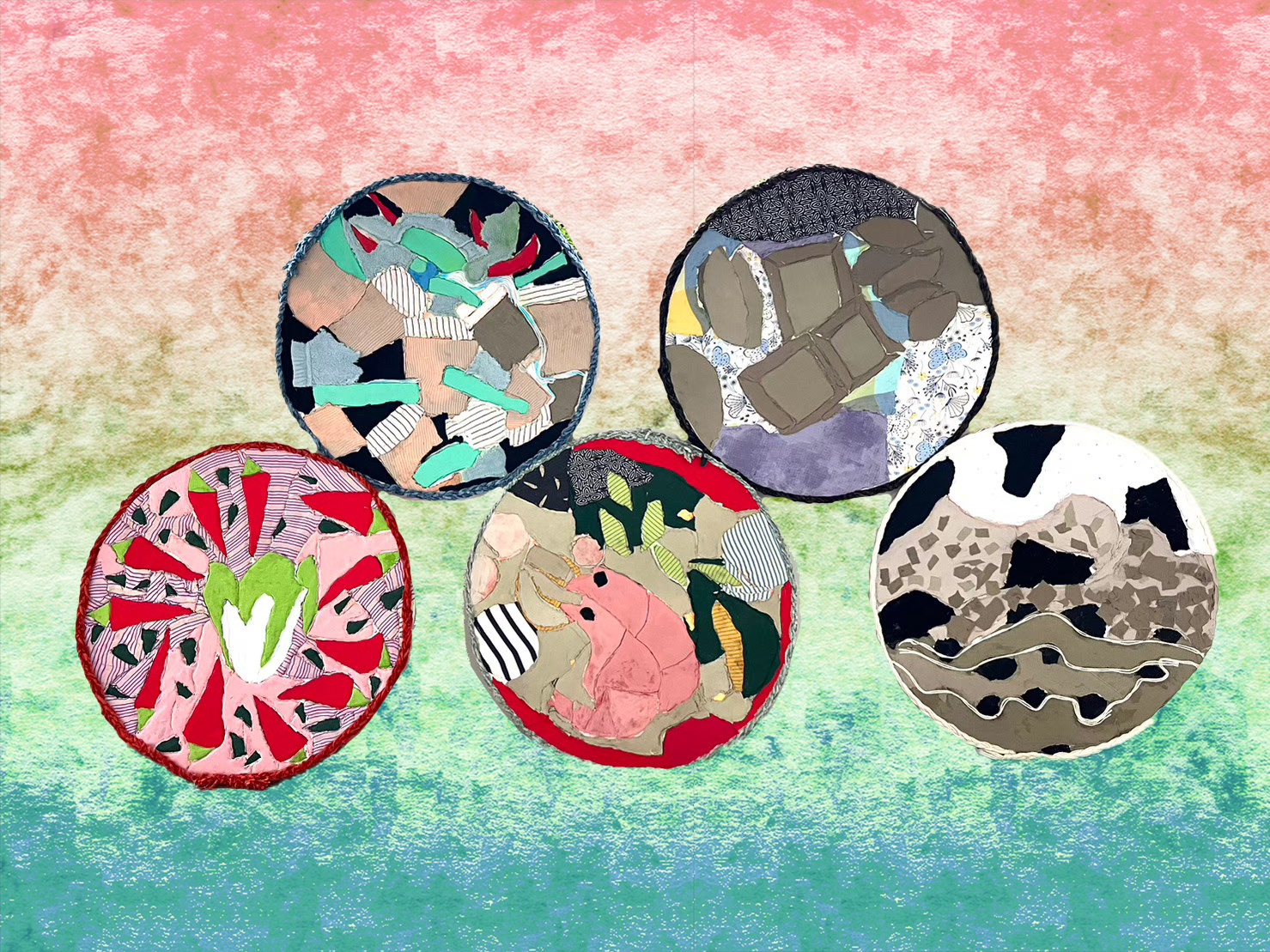 我們分別以酸、甜、苦、辣、鹹五種味道來進行美食聯想,並利用拼布的方式,將對美食的感受透過不同的配色進行創作。