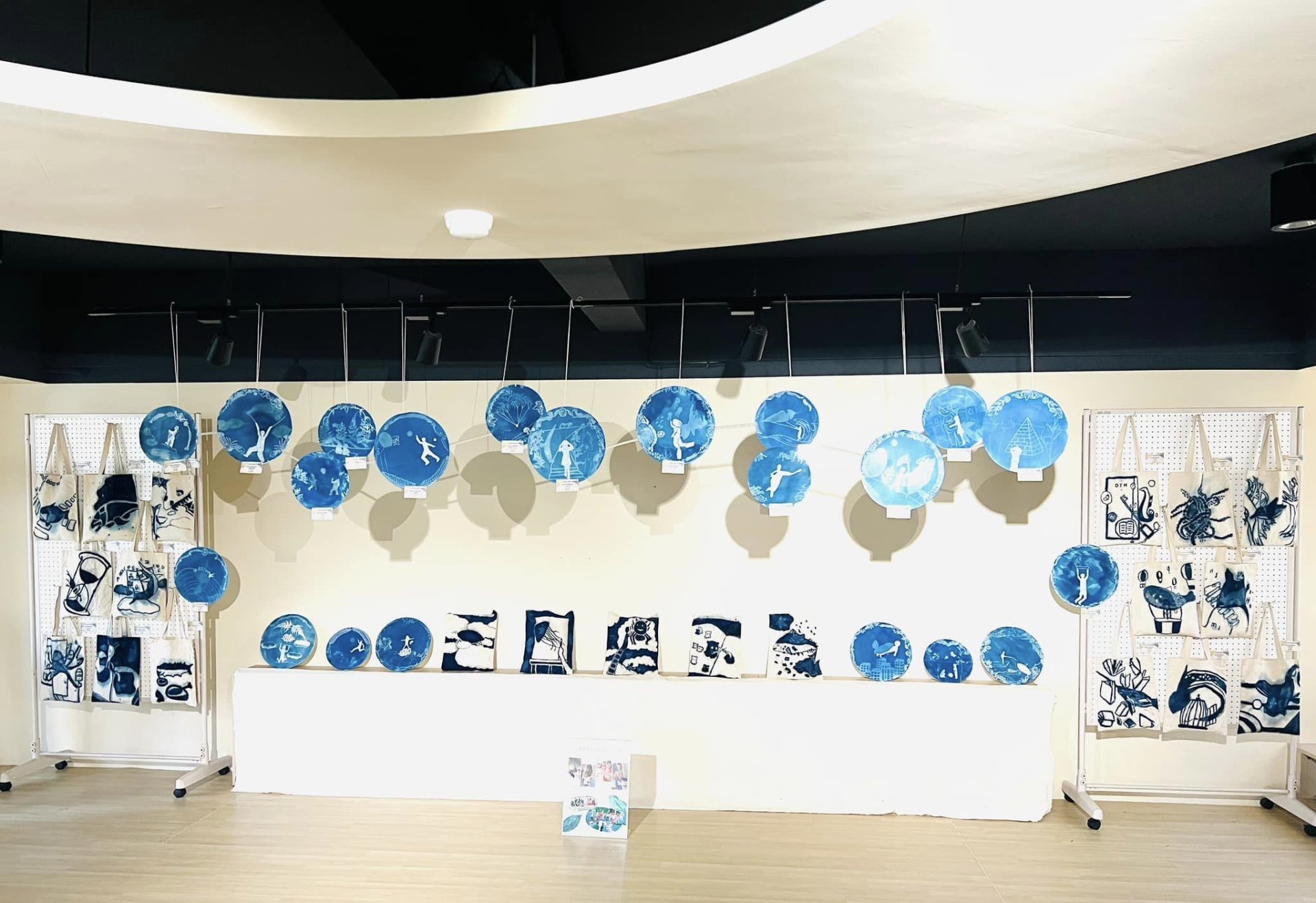 這件作品是用藍曬的方法所製作,然而布袋中的背景,是我們對未來想像的意象,而畫面中的海洋生物,可能個性與我們雷同、習性與我們相似,也可能是我們想成為的樣子,是代表我們的象徵。