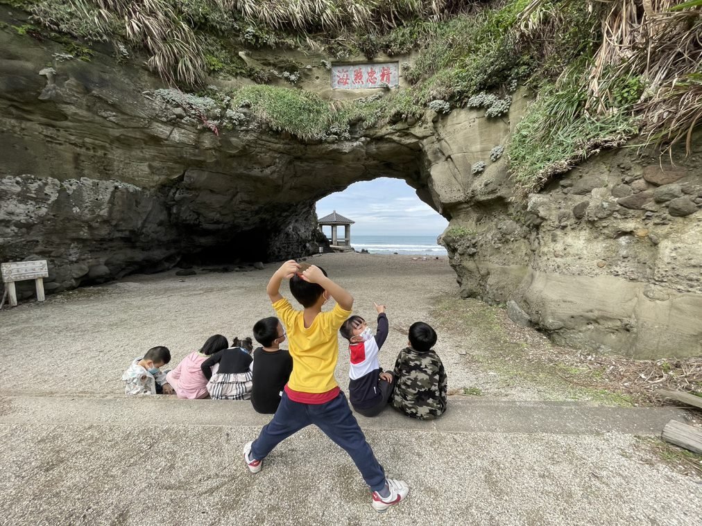石門洞一樓可以拿玩沙工具玩貝殼砂