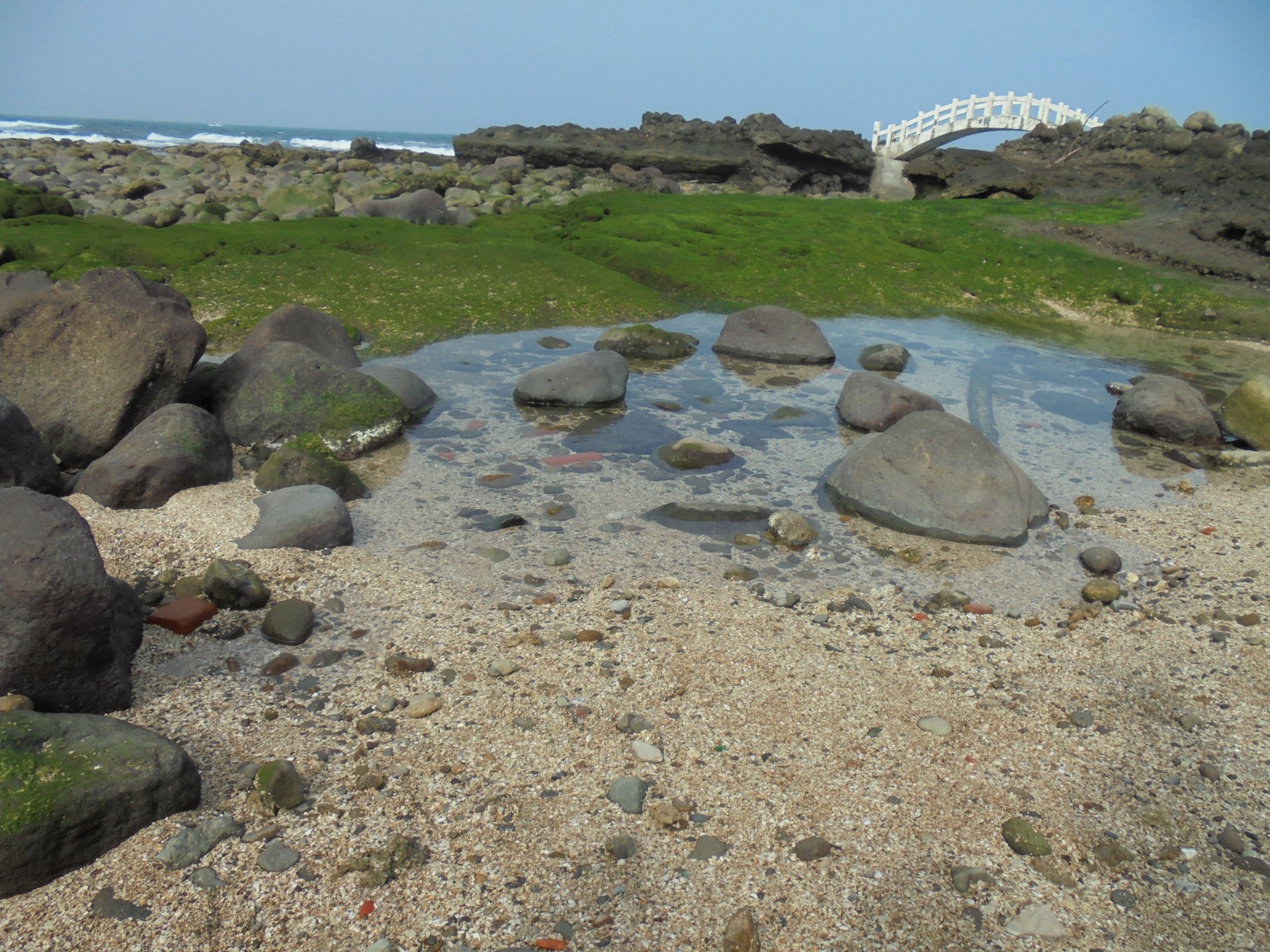 退潮的時候會看到青苔石頭