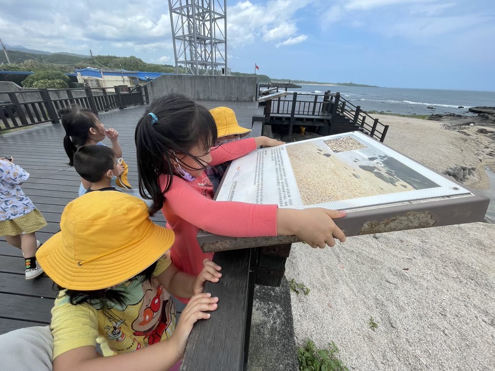 可以拿樹枝在貝殼砂上面畫畫,還有玩123木頭人。(111/06)