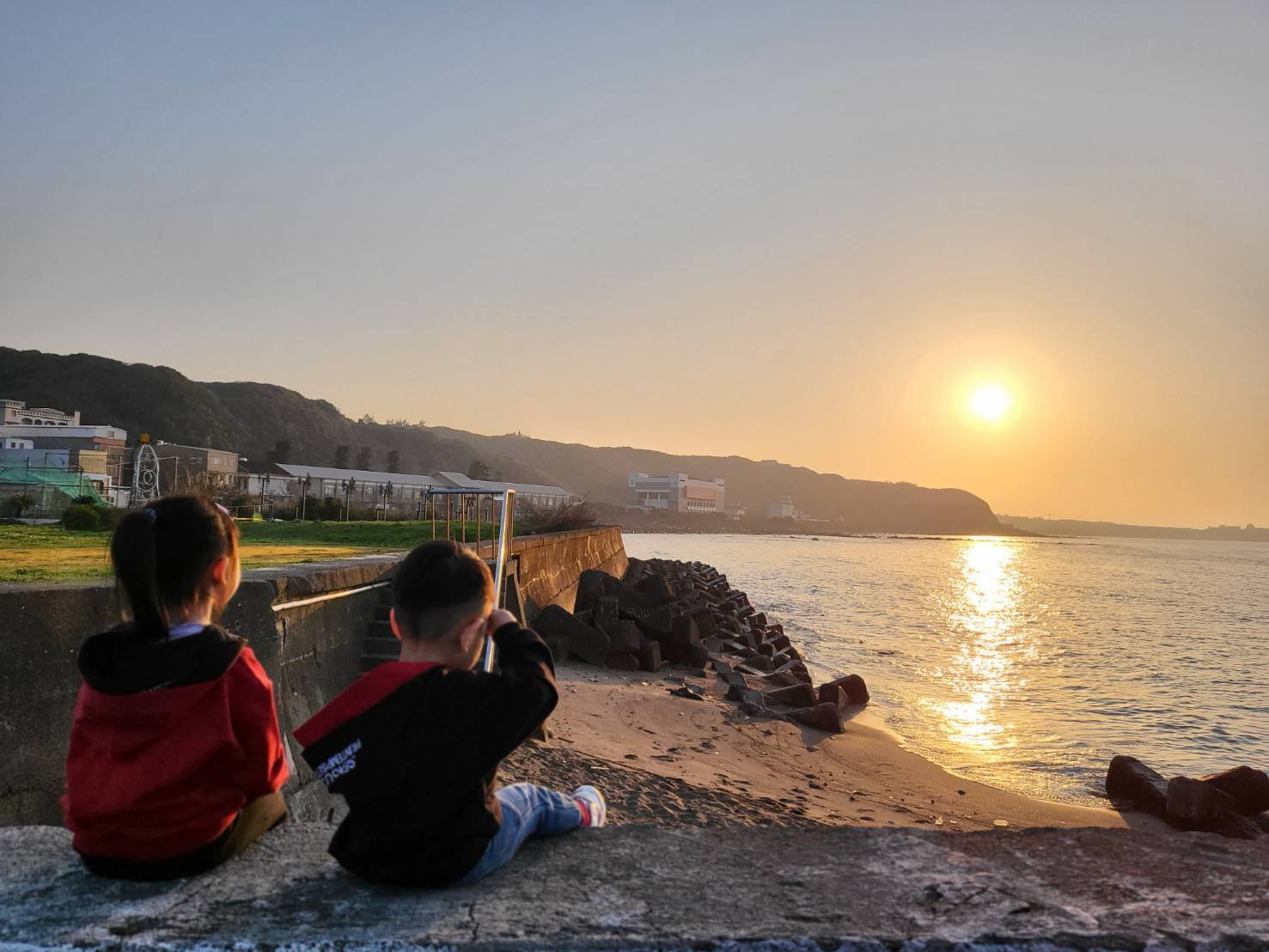 老師說夏天放學的時候可以來看夕陽