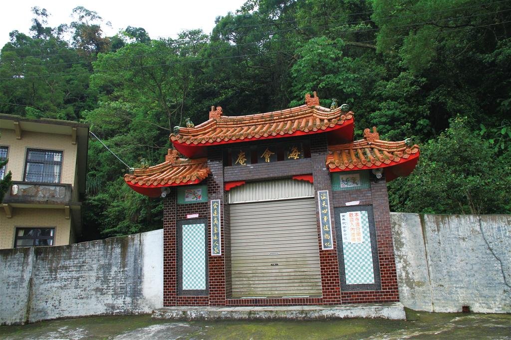 海會庵,建於日本昭和4年間〈西元1928年〉,祀奉西方三聖阿彌陀佛、觀世音菩薩、大勢至菩薩與釋迦牟尼佛。庵前數棵桂花樹,樹大且枝葉茂密,陣陣桂花香隨風飄散,彷彿身歷仙境,寺庵三面環山,前有峽谷,遠眺或夜望新竹市,香山竹南沿海,燈漁閃爍,令人消塵脫俗。