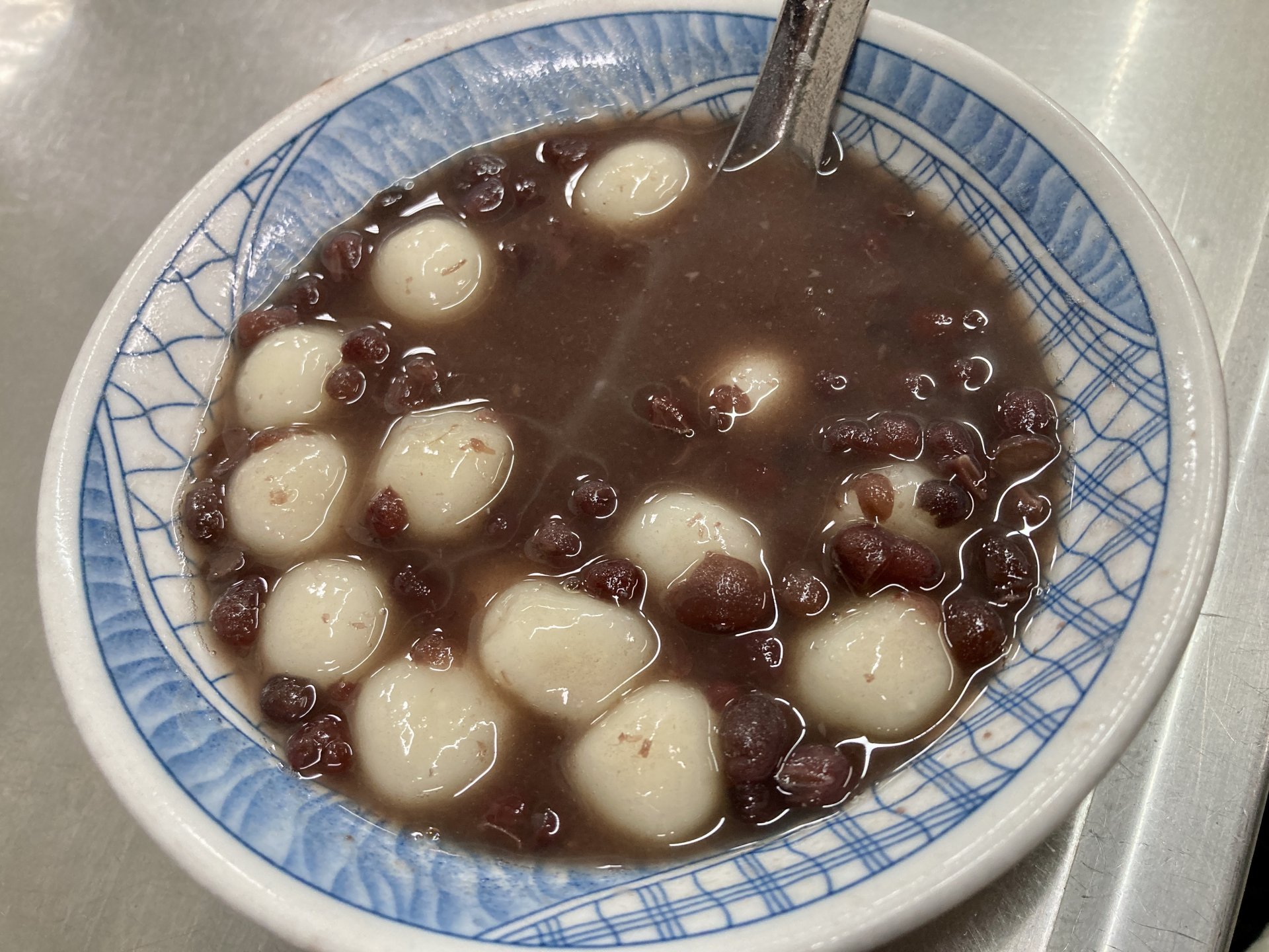 紅豆顆粒口感分明,湯圓介於軟跟彈之間,加了紅麴的甜湯不會過甜
