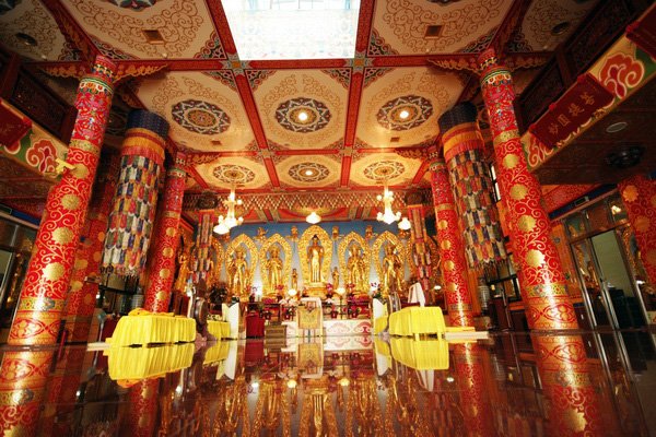 全台灣最大的藏傳佛教寺院「白馬山菩提講堂」,建築融合了中國宮殿式的迴廊琉璃瓦、印度佛寺的鐘塔造型與西藏傳統佛寺三大風格。白馬山菩提講堂的外觀講究,內部也有豐富的彩繪和器物收藏,相當雄偉壯觀,莊嚴肅穆的宗教氛圍,讓白馬山菩提講堂更顯得清幽寧靜。