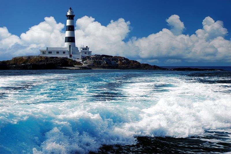目斗嶼與其南側的吉貝嶼相隔7公里。全島周長843公尺,面積僅0.0244平方公里,是一個迷你小島,島上以目斗嶼燈塔聞名。由於附近有許多暗礁,以往常發生船難,所以在清代光緒年間設立目斗嶼燈塔,為船隻指引方向,至今已超過百年。目斗嶼燈塔高40公尺,黑白相間的塔身矗立在黑褐色的岩礁上,自然散發一股巍峨的氣勢。由玄武岩組成的目斗嶼,極具原始風貌,黑色的岩石讓島的四周立體感十足且層次分明,激起浪花朵朵,透出一份豪壯之氣。從吉貝嶼前往目斗嶼的航程上,由於水域較淺,充足的陽光讓此海域擁有多樣化的海洋生物,當陽光灑落下來,光芒輕快地跳躍在清澈碧綠的水面上,海底世界一覽無遺。