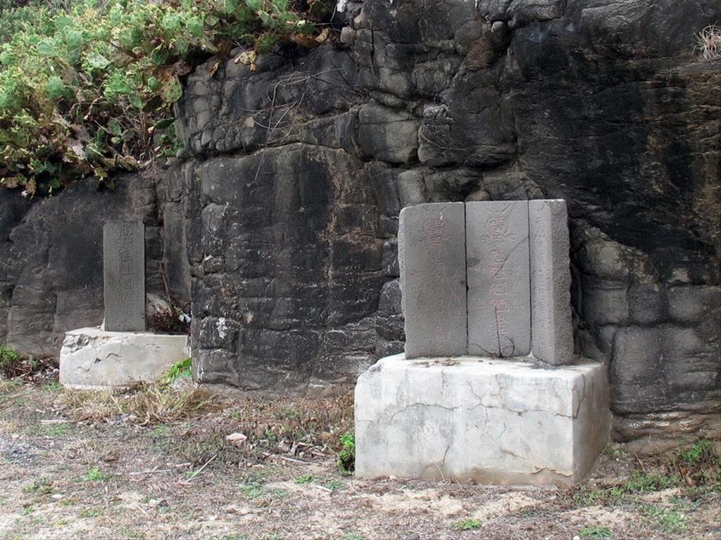 石敢當外觀:碑型石敢當碑文:文字、符號尺 寸:0.29M*0.10M*0.68M方 位:東南130度構建形式:片石平頭形碑文內容:右:雷令喃無呵[口爾]咜佛三十六天罡七十二地杀中:雷令魑魅魍魎祭殺捉縛[元帥]枷鎖[元帥]左:雷令姜太公收邪魔五雷押煞七星墜地赤崁村因地理地形中央似盆地,早期稱大赤崁澳,於日據時代改為大赤崁並沿用至今,為白沙鄉的主要行政中心,海陸交通都相當便利。於北海遊客中心南方曾有形似狗頭的岩壁,相傳來自西嶼的「凸喜」父子至赤崁從事買賣,血氣方剛的兒子因與人賭注,將狗頭岩破壞踢斷,惹怒了當地神明,經村民後,要求肇事者向神明懺悔並且修補狗頭岩,因而聘請乩童於狗頭岩下方安設三面石敢當來壓制煞氣。多年來,毫不畏懼強勁的東北季風,依舊屹立不搖的鎮守於此,保祐村里平安。資料來源:赤崁村地方耆老口述、部分摘自《白沙鄉誌》一書